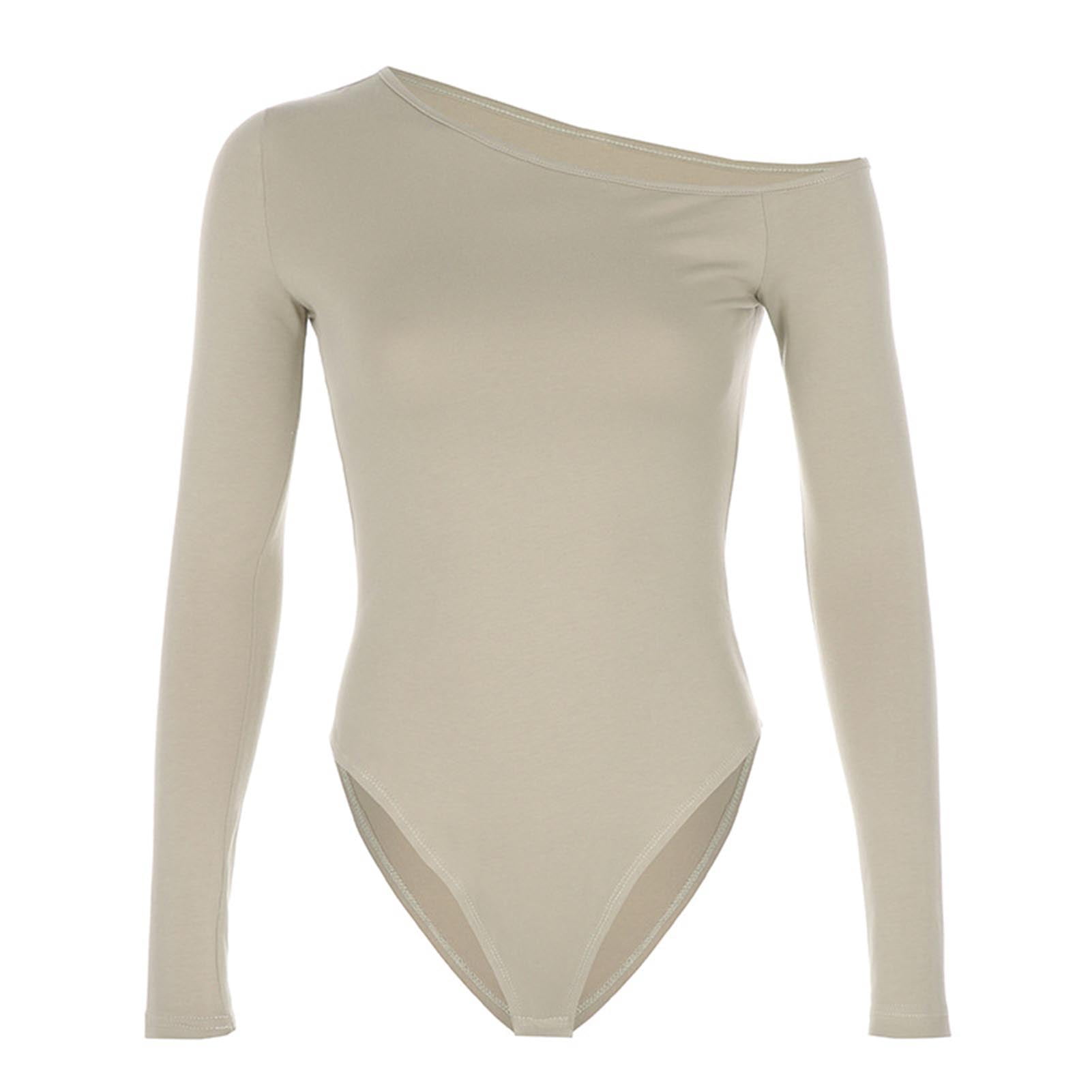 Manman Women Solid Color Long Sleeve One Shoulder Romper One Piece Bodysuit Jumpsuit Walmart Com